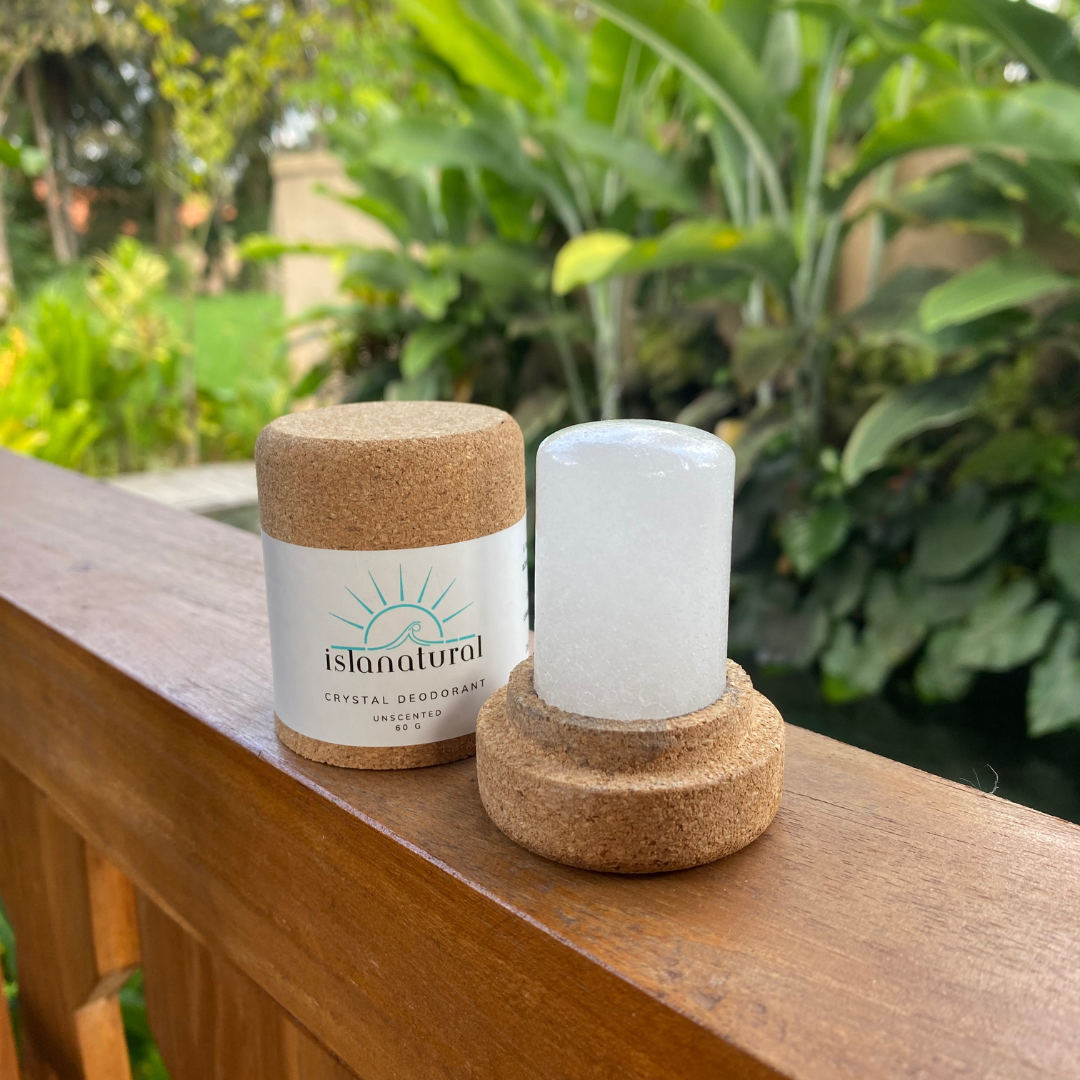 The crystal deodorant is made of potassium alum, a naturally occurring mineral salt that has been used for hundreds of years in Southeast Asia.
